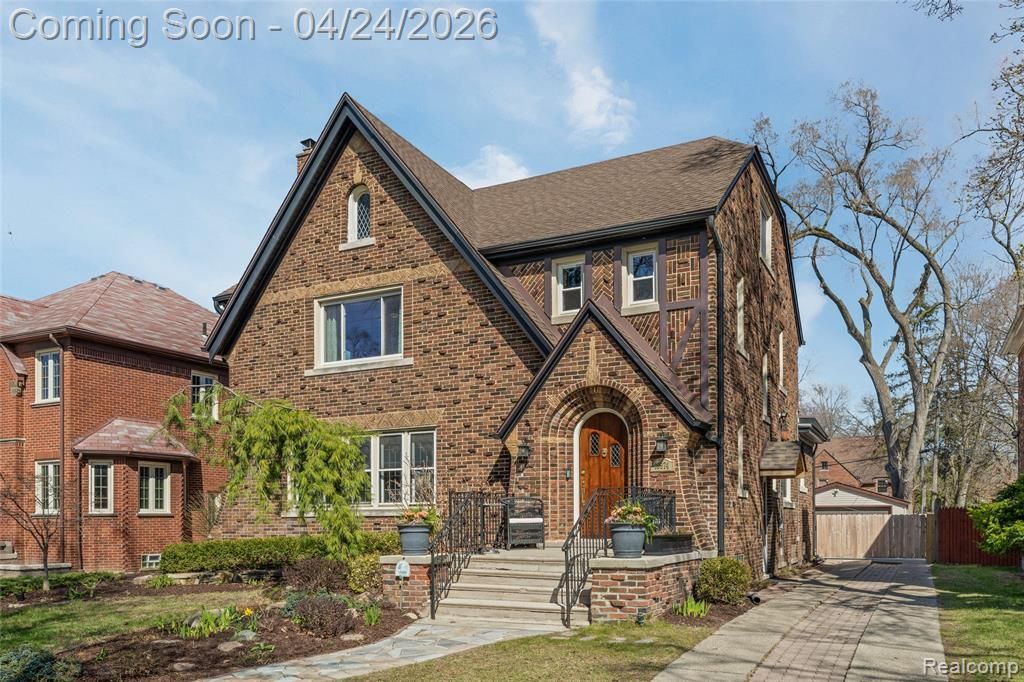 Welcome to 18974 Warrington Drive, an updated, move-in ready all-brick Tudor! Beautiful, professionally-landscaped front yard includes a MI Bluestone walkway that leads to a stunning arched front entry with stacked stone detailing & an upgraded front porch. Enter into your elegant foyer w/original leaded glass doors & refinished stairs w/wrought iron railing. Through the french doors, a spacious living room boasts detailed original plaster, woodwork, stained glass, & an incredible, restored wood burning fireplace w/original tile surround. Beautiful plaster archways lead you through the Living/Library/Dining Rooms, opening to an updated kitchen, complete with SS appliances. Rounding out the 1st floor, you have your 1/2 bath for easy guest access. 2nd floor, you'll find 4 spacious bedrooms, as well as 2 full bathrooms, featuring original tilework (primary bedroom w/en-suite) along with thoughtful modern updates. On the 3rd floor, the original knotty pine is ready to be your canvas — 3rd floor primary suite, a tucked away office space or a haven for the kids. Finished basement includes a dedicated laundry area, stubbed 1/2 bath, as well as several storage rooms for out-of-season items. There's also the opportunity to customize the main finished room to your needs — an exercise room, playroom or movie viewing area, the choice is yours! Back on the main level, the sunroom leads you to the backyard through 2 sets of new french doors showcasing a Trex deck & overlooking the lower brick patio & backyard oasis! Take a seat beneath the cafe string lights to enjoy the deep, privacy-fenced backyard complete w/mature landscaping & a secure, automatic gate. The driveway includes a convenient turnaround, making it even easier to access the newer, 2-car garage. The home features updated windows, along with stone sills, as well as a new boiler (2020), HWT (2025), & roof (2017) Original character & craftsmanship w/modern amenities & conveniences. Don't delay, this home will not last!