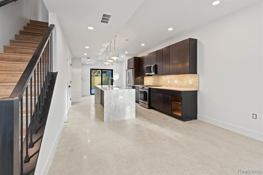 OPEN HOUSES HELD @ OUR MODEL 5232 AVERY! ASK ABOUT OUR PREFERRED LENDER'S DOWNPAYMENT AND CLOSING COSTS GRANT! Experience refined city living in this beautifully upgraded 3-level townhome at the Terraces at Woodbridge. Available for immediate occupancy, this elegant 3-bedroom, 2.5-bath residence features both a private courtyard and a stunning rooftop terrace—perfect for relaxing or entertaining above the city. As the last remaining unit with a two-car garage, this home offers a rare opportunity within the development. Inside, nearly $32,000 in thoughtfully selected upgrades elevate the home’s aesthetic, all already included in the price. The designer kitchen showcases a striking waterfall-edge quartzite island with a matching backsplash, complemented by an upgraded lighting package and premium plumbing fixtures that create a sophisticated, modern feel. Additional highlights include a custom closet in the primary suite, a washer and dryer already installed, and numerous other finish upgrades throughout that further enhance the home’s style and functionality. Located at the corner of Avery and Merrick Streets in the northern portion of the highly sought-after Woodbridge neighborhood, the property places you just steps from beloved local favorites including Woodbridge Pub, Pie Sci Pizza, Lexington Bar, and Bash Izakaya. Enjoy easy access to Wayne State University, Midtown Detroit, and nearby favorites such as Barda, Puma, Cafe Prince, and Vesper Books & Wine—all within a short walk. 15 YR NEZ NEW CONSTRUCTION PROPERTY TAX ABATEMENT ELIGIBLE for principal residents.
