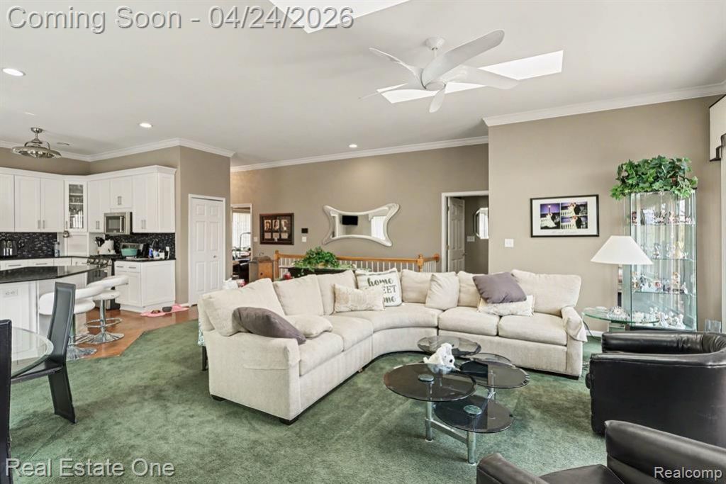 Welcome to this beautifully maintained end-unit ranch condo in the Village of Milford, just a short walk to downtown shopping, dining, entertainment, and everyday conveniences. Offering 3 bedrooms and 2.1 baths, this inviting condominium combines comfort, style, and an exceptional location. Step inside to discover an open and airy floor plan with soaring ceilings, abundant natural light from newer windows and elegant crown moldings throughout the main level. The spacious great room features a cozy gas fireplace with custom mantle and ceramic surround, creating the perfect place to relax or entertain. The bright kitchen is designed for both function and gathering, complete with upper cabinets, stainless steel appliances, ceramic backsplash, hardwood floors, generous counter space, and a large island bar. A nearby door wall opens to the upper deck with a retractable awning, where you can enjoy peaceful, unobstructed views of the rear grounds. The main-floor primary suite is a private retreat with cathedral ceiling, beautiful Palladian window, large walk-in closet with custom shelving, and a spacious bath featuring double vanitie and large, custom shower. A second main-level bedroom with French doors and full closet is ideal for a guest room, home office, or den. The finished walkout at the lower level is truly an entertainer’s dream, offering a large great room and direct access to a second, lower deck and patio. A generous third bedroom with walk-in closet and full bath makes this level perfect for guests, extended family, or an in-law suite. The lower utility room features a new furnace and a large storage area. Additional highlights include a finished 2-car attached garage with freshly painted floor, laundry/mud room, newer windows, new window treatments, new furnace, abundant storage, and stunning, unobstructed outdoor views from both decks and patios. A rare opportunity to enjoy spacious, low-maintenance living in one of Milford’s most desirable locations.